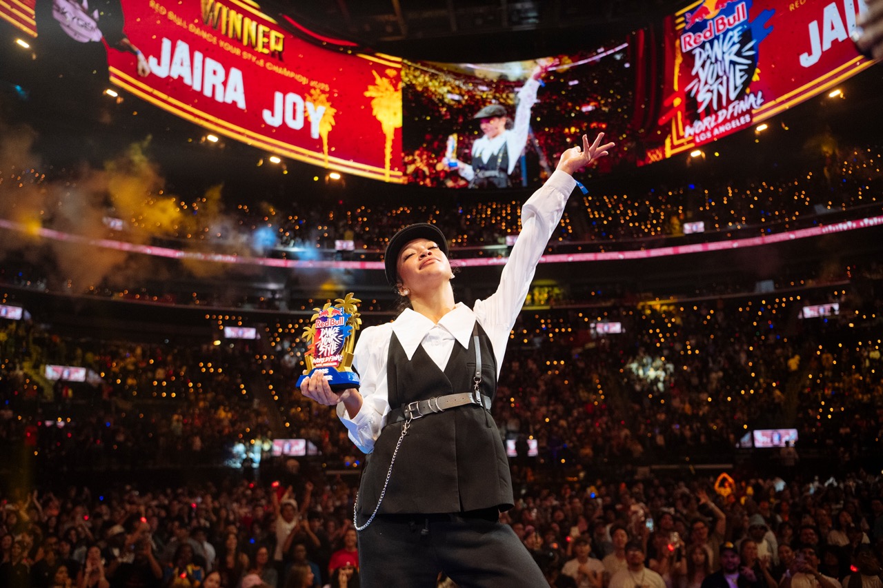 [Los Angeles, CA — October 11, 2025] Jaïra Joy from The Netherlands became the first female dancer to win the Red Bull Dance Your Style World Final title, rising from a National Final victory to global glory. The 2025 World Final marked the first-ever all-female final, and at the Intuit Dome, a crowd of 10,000 packed the arena, witnessing her captivating performance in a showdown against 2023 world champion Waackxxxy.