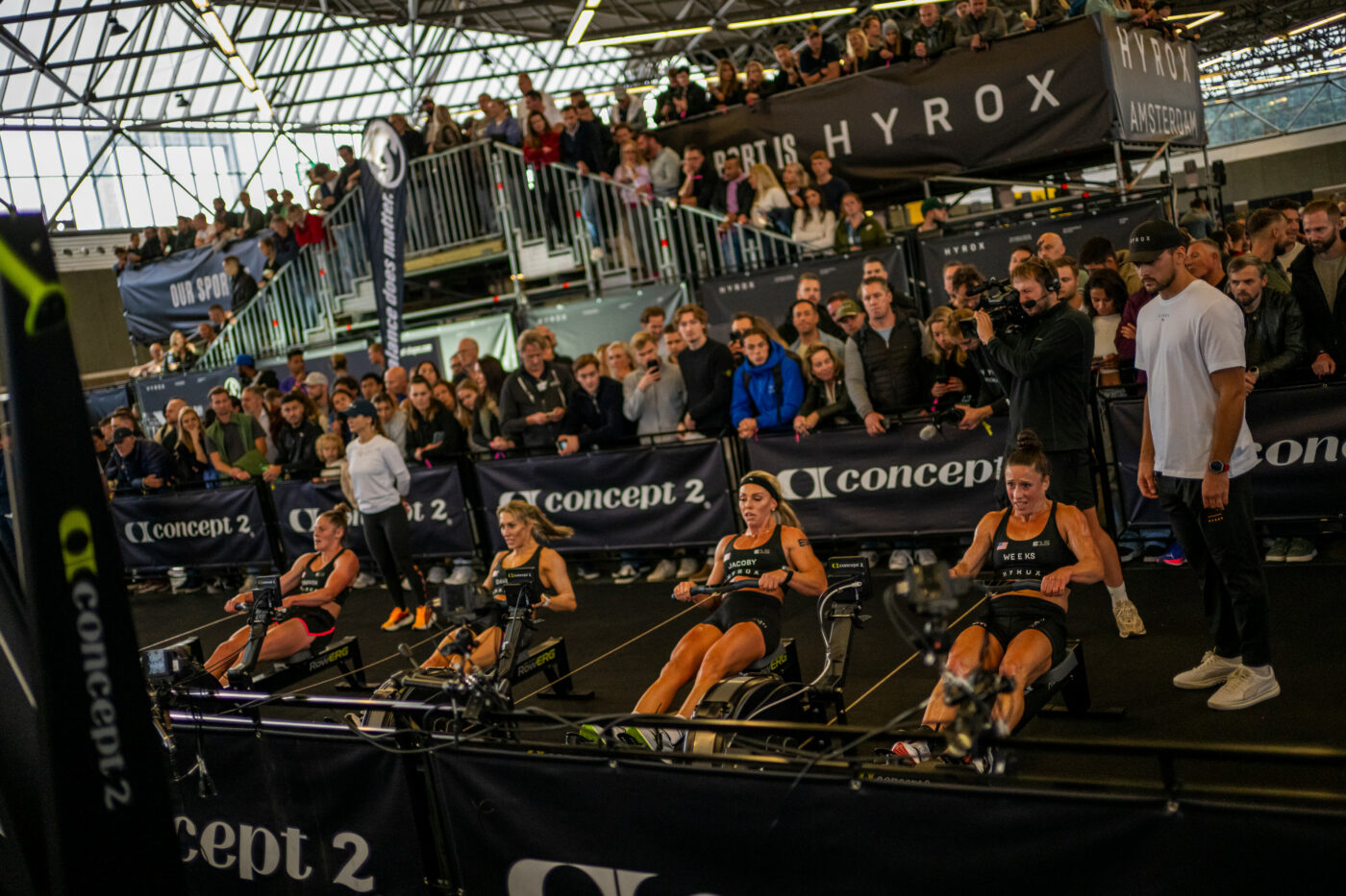 HYROX Major Amsterdam Day One began with the women’s Elite 15 race. Buoyed by a lively crowd, Three-Time Women’s World Champion Lauren Weeks, LA champion Lauren Griffith, and reigning champion Megan Jacoby battled for first place.