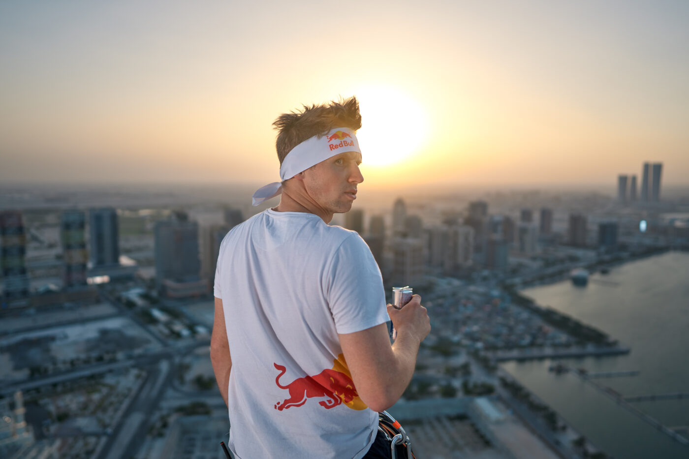 “When I first saw the Iconic Towers, I knew this was a building that I had to walk. Anything worth achieving comes with its fair share of challenges, and I’m proud to complete this one. Per metre walked, this line was my toughest ever. As an athlete, I’m always looking to push myself further and defy the odds. In this case the heat and wind conditions added a different element that I needed to react to and manage spontaneously while I was on the slackline.  The warm LED lights and their extra weight also changed how the line interacted with me and my bodyweight. It’s like skateboarding on a big heavy tree trunk rather than a light board.”