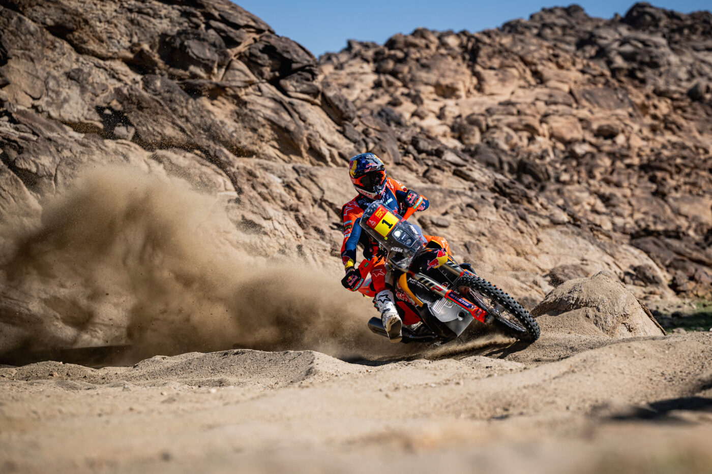 Canet’s fellow Red Bull KTM Factory Racing riders Daniel Sanders and Luciano Benavides both pushed him hard on the dusty piste on outskirts of Yanbu. Reigning RallyGP Dakar winner Sanders finished second – just three seconds behind Canet – while Benavides finished fourth on the Prologue.