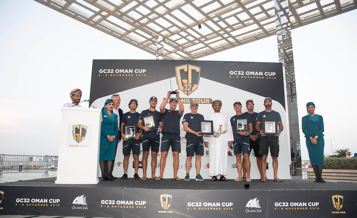– GC32 Racing Tour 2019 Championship Podium: 1. Alinghi (SUI), 2. Oman Air (OMA), 3. Red Bull Sailing Team (AUT). Final race results for the GC32 Oman Cup: 1. Alinghi (SUI), 2. Zoulou (FRA), 3. Red Bull Sailing Team (AUT).