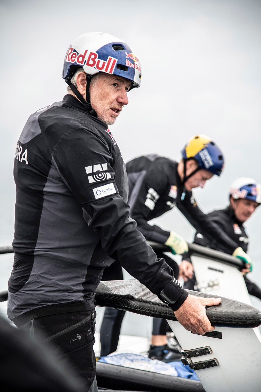 In perfect conditions, Red Bull Sailing took the boat to speeds of up to 32 knots. “Actually, we’re not interested in speed here. Of course we can sail faster by the sea if the wind conditions are ideal. However, Lake Constance is perfect for the foil test. When evaluating the data, we pay particular attention to the efficiency of the foils. Especially when it comes to stability, because there’s up to 6 tons of load coming into play in some maneuvers. And a centrifugal force load of up to 4 for the crew,” explains tactician Hans Peter Steinacher.
