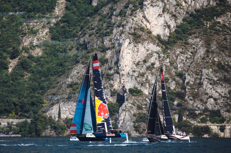 RIVA DEL GARDA (Italy) – The glorious Lake Garda sunshine turned fickle across four days of foiling for the World Championship, putting the record fleet of 13 catamarans to the test in blustery conditions. The event also marked the second act of the Extreme Sailing Series. With five acts left to go, SAP Sailing Team (DEN) hold the top of the Extreme Sailing Series leaderboard, with Alinghi (SUI) and Oman Air (Oman) in close pursuit at second and third overall.