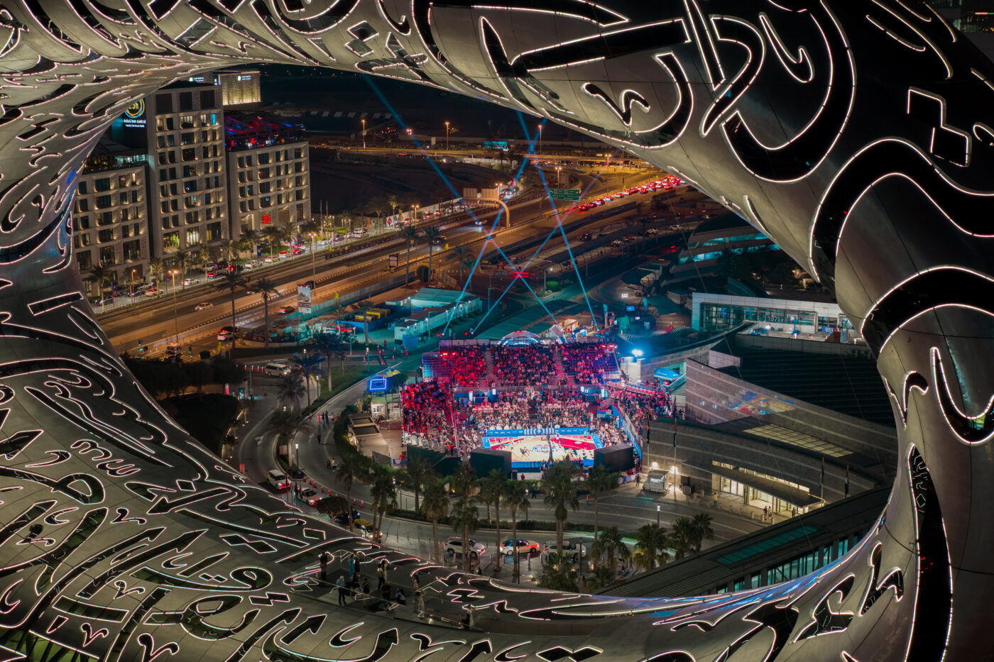• Thousands packed the Jumeirah Emirates Towers Plaza, where the Museum of the Future served as a breathtaking backdrop. The architectural landmark transformed the open-air court into an immersive arena that blended culture, design, and sport – a setting that elevated the tournament far beyond a standard competition into the future of basketball.