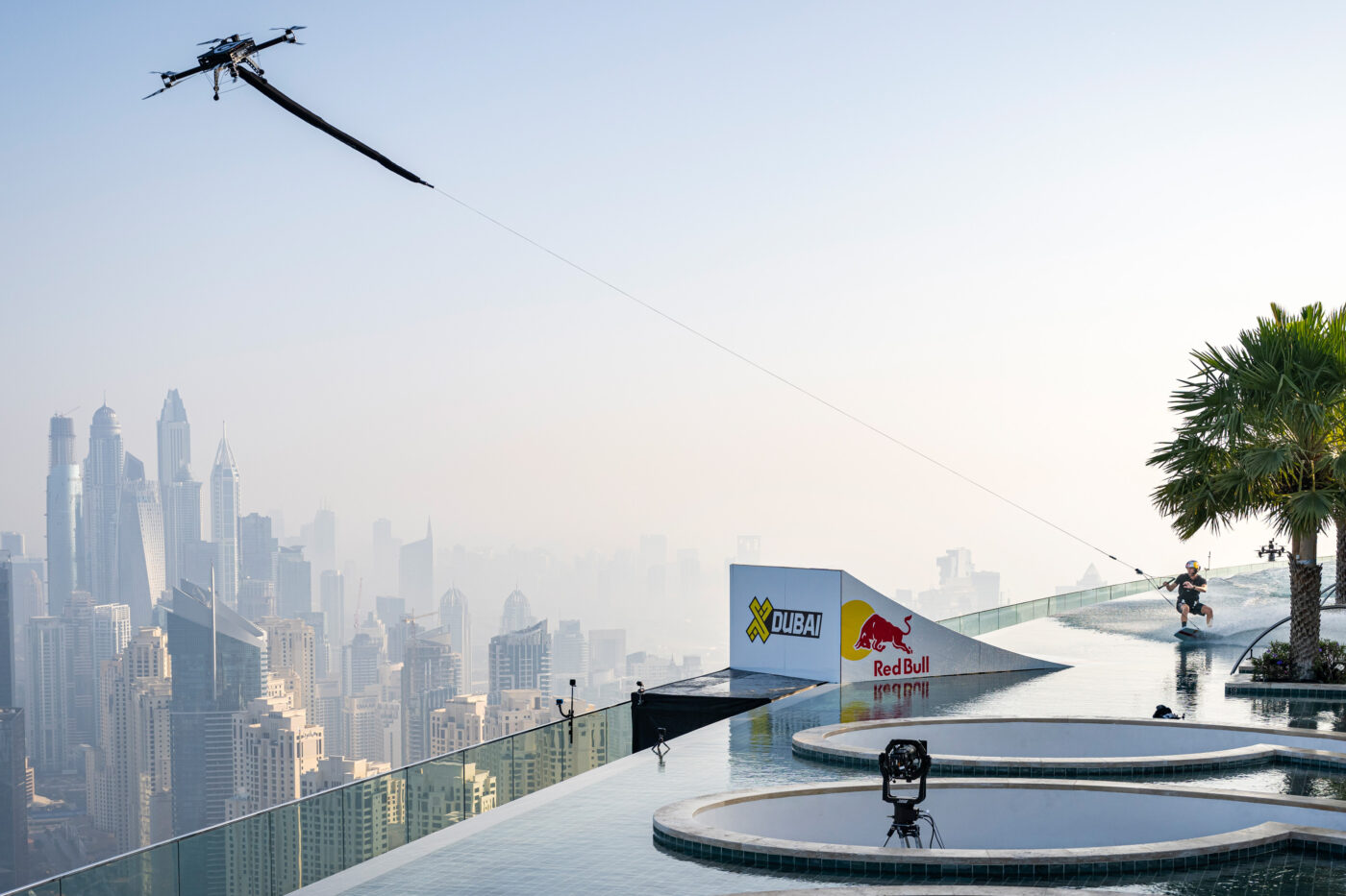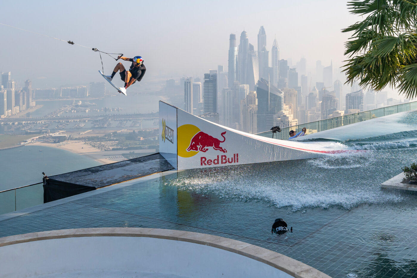 – On the unique location, Grubb concluded, “When we got this idea we looked for high water and there’s not much out there. Then we saw the Address Beach Resort in Dubai with the highest invisible edge pool in the world and we had to come take a look at it. The building is set up for us, the way the pool curves is perfect for me as I’m right foot forward and the shape is what we needed for the ramp and then there’s this nice big landing area on the beach. As soon as we got eyes on it in person, we knew it was on and that’s when the real mission started.”